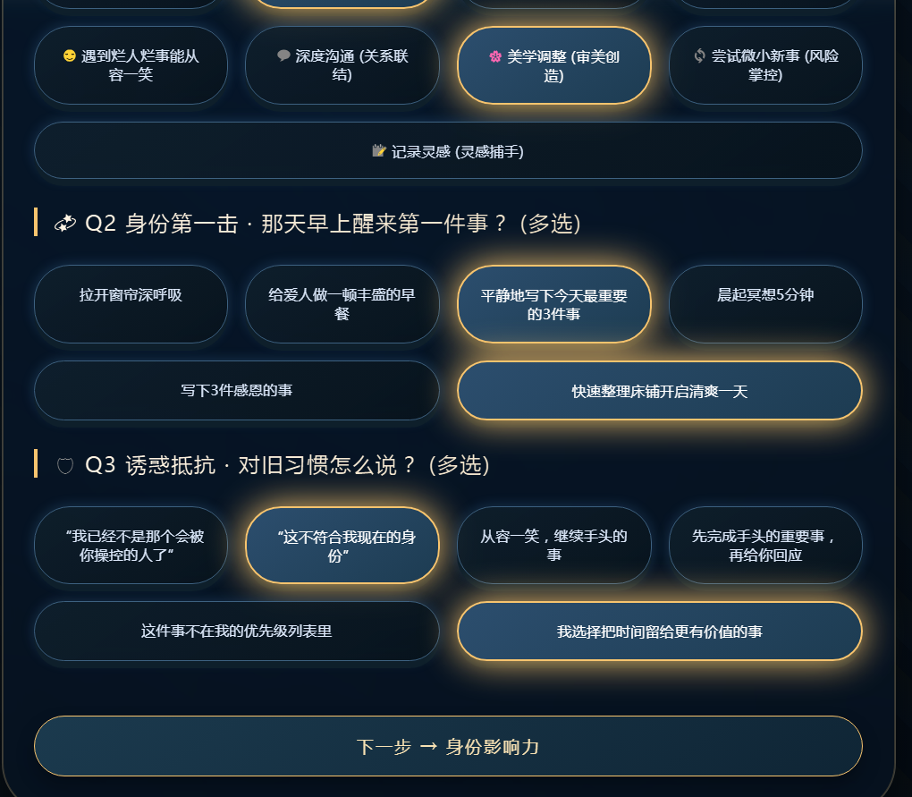 • 基础版:核心特质 + 每日行动锚点,直接落地